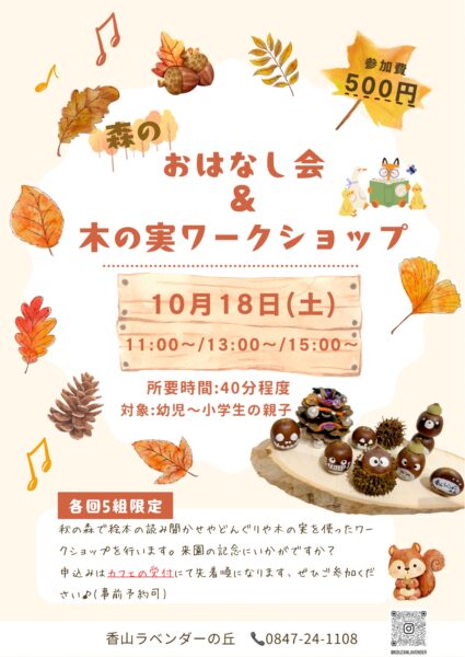 秋の森で「絵本の読み聞かせ」と「どんぐりや木の実を使ったワークショップ」をお楽しみください