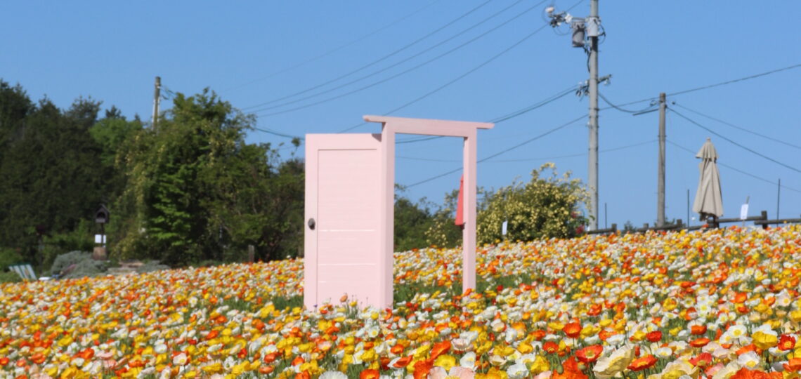 春はポピー、初夏はラベンダー、秋はコスモスが一面に咲き乱れます。